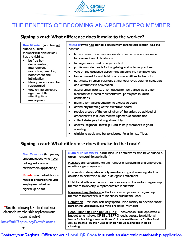 THE BENEFITS OF BECOMING AN OPSEU/SEFPO MEMBER