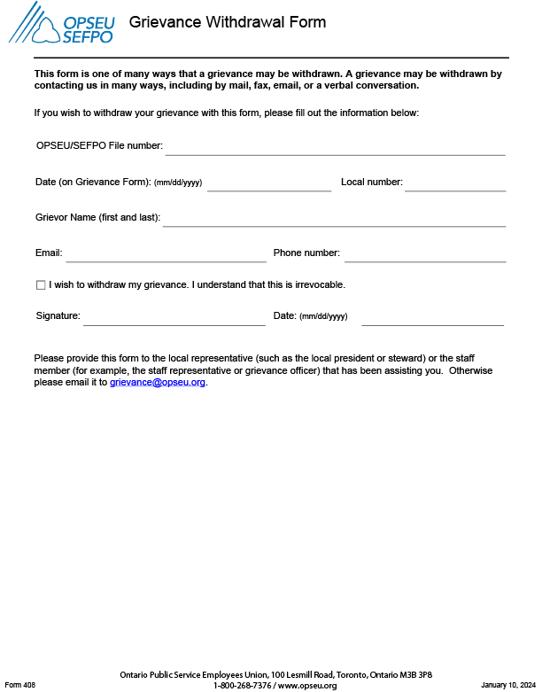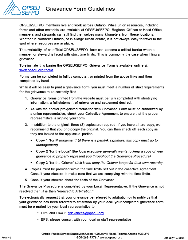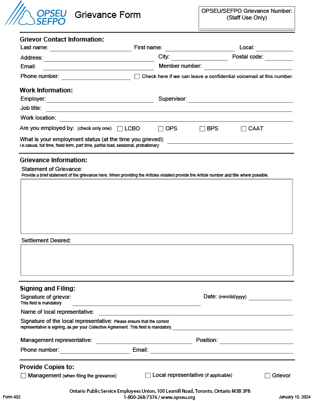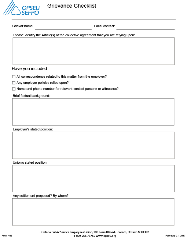 GRIEVANCE FORMS AND GUIDELINES Download PDF - 1 Page Download Fillable PDF - 2 Pages Grievance Checklist Form - Fillable PDF Download PDF - 1 Page Download PDF - 2 Pages